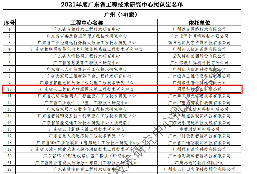 日前,广东省科技厅发布2021年度广东省工程技术研究中心名单。经过层层筛选、专家评审,依托【开云电子登陆】中国有限公司 建设的“广东省人工智能及物联网应用工程技术研究中心”榜上有名。广东省工程技术研究中心主要依托省内行业、领域具有科技实力的、拥有一定规模以上创新型企业建设,部分依托高校和科研院所组建。工程中心旨在